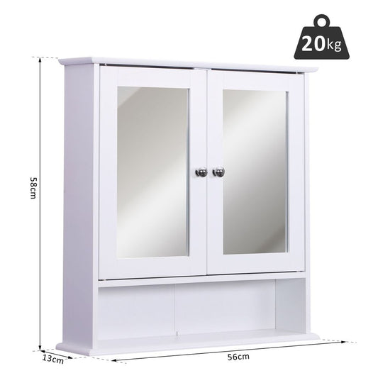 Stylish Kleankin Double Door Wall-Mount Bathroom Mirror Cabinet with Storage