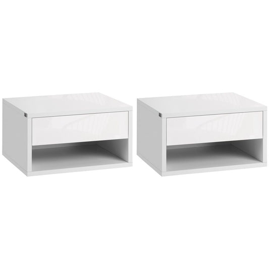HOMCOM Nightstand Set of 2, Wall Mounted Bedside Cabinet, High Gloss White