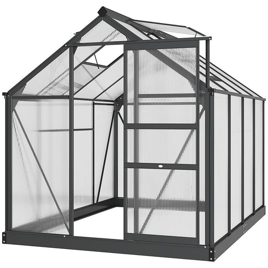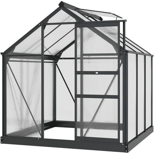 6x6ft Polycarbonate Garden Greenhouse with Aluminium Frame & Sliding Door