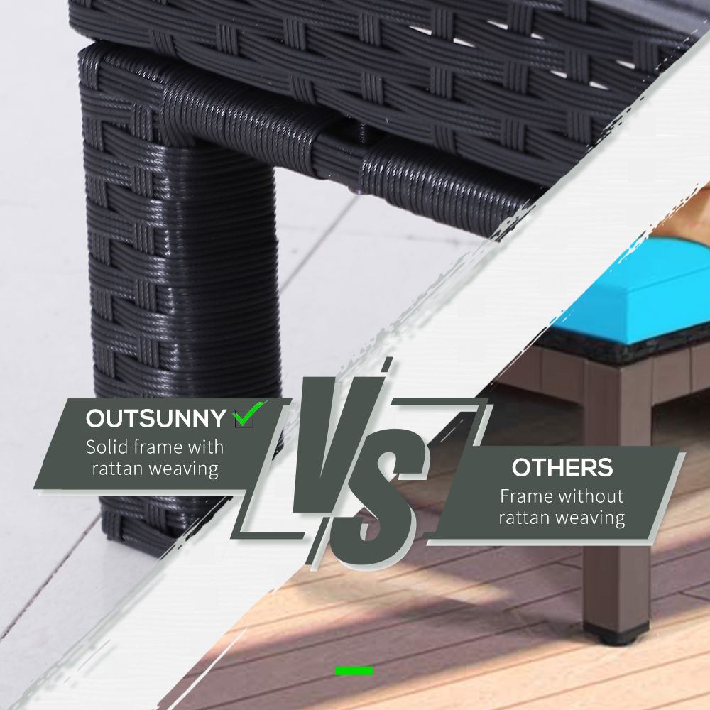 Embrace the sunshine and elevate your outdoor experience with the exquisite 2 Seater Rattan Lounger from Outsunny. This chic and contemporary patio day bed boasts two perfectly matched mixed grey sun loungers, designed for both style and comfort. Each lounger features a robust powder-coated metal frame, intricately wrapped in durable wicker rattan, ensuring long-lasting use and elegance.