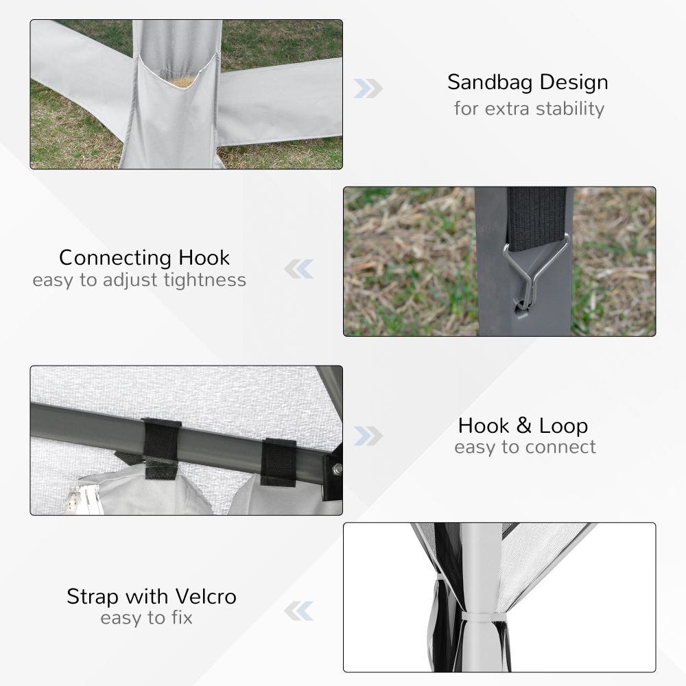 3.2m Pop Up Gazebo Hexagonal Canopy with Mesh Sidewalls - Light Grey