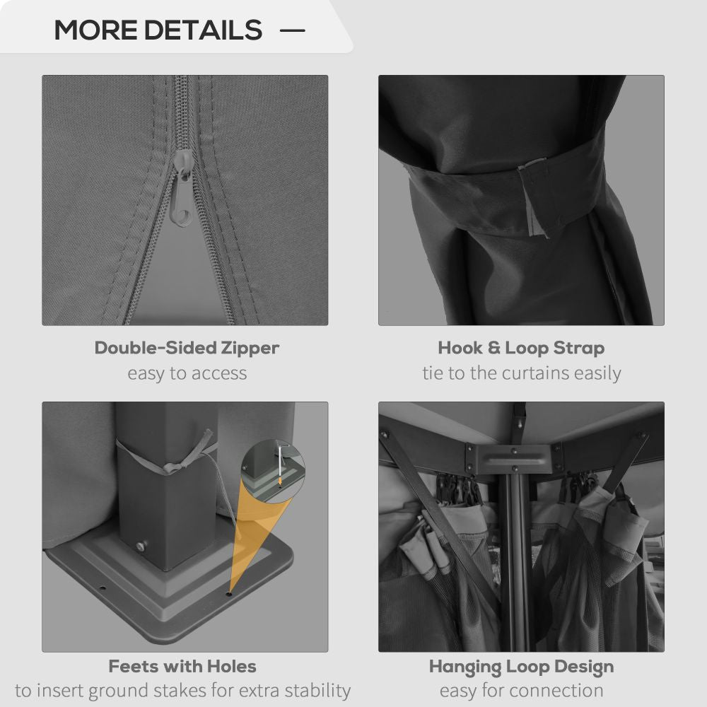 The durable polyester canopy offers a cozy shelter, while its innovative two-tier roof design promotes optimal airflow, allowing you to stay cool even on warm days. For added comfort and privacy, the gazebo features curtains equipped with inner netting, keeping pesky bugs at bay. Plus, the included anchoring accessories ensure stability and safety against the elements.