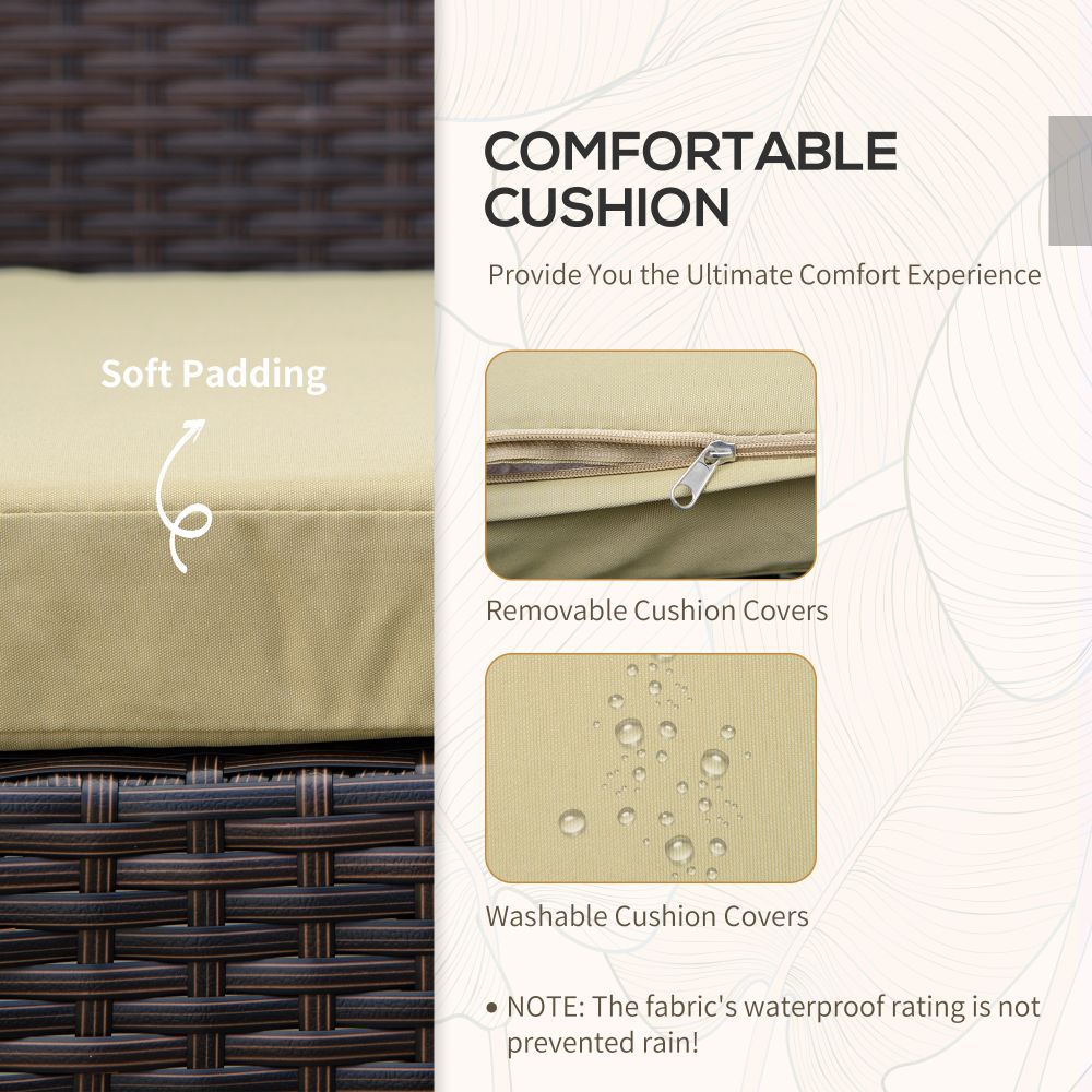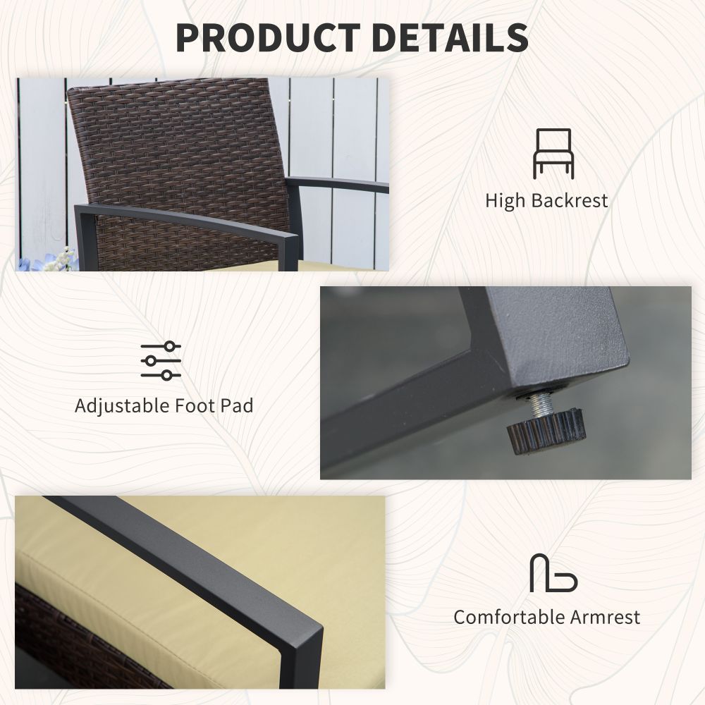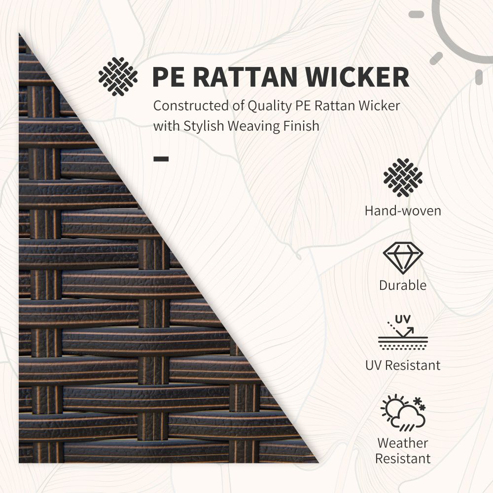 Enhance your outdoor space with the exquisite 3Pc Rattan Bistro Set from Outsunny. Crafted from high-quality, hand-woven PE wicker rattan and supported by a sturdy metal frame, this set is both weather-resistant and remarkably durable, ensuring it withstands the elements. Each chair is designed with padded cushions, a high-rise back, and arms to deliver exceptional comfort, making it the perfect spot to unwind and enjoy hours of relaxation. The accompanying table features a thick glass top that not only adds a touch of elegance but is also easy to clean and maintain, remaining stain-resistant to stay fresh for years. This bistro set is ideal for casual gatherings, intimate conversations, or simply enjoying a quiet moment outdoors.