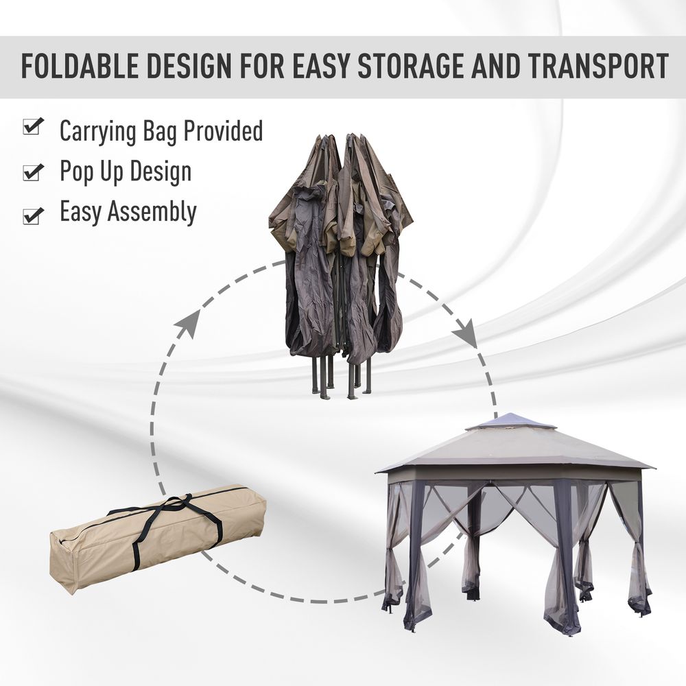 4.05m x 4.05m Metal Frame Mesh Draped 2-Tier Roof Gazebo - Brown