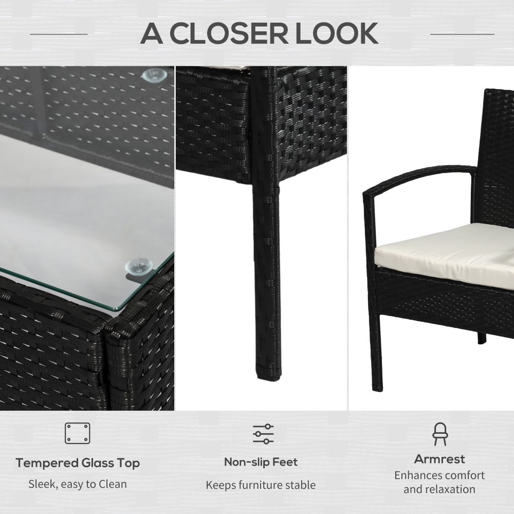 4-Seater Rattan Garden Furniture Set Black Cream Outdoor Patio Bistro