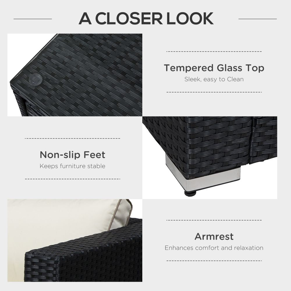 4-Seater Rattan Wicker Garden Patio Sofa Storage & Table Set Black