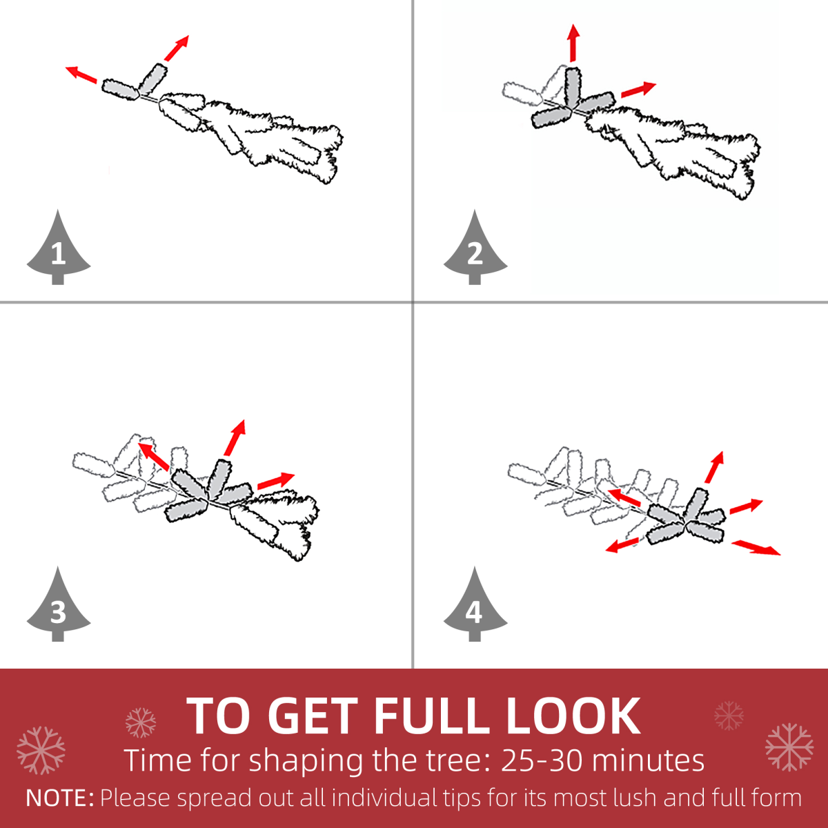 Bring winter charm into your home with this 7.5-foot artificial Christmas tree. The snow-dipped design features specks of white on the ends, creating a pretty, wintery look that sparkles in holiday lighting. The branch tips are crafted to resemble a real Christmas tree, giving you that authentic vibe without the mess. It’s easy to shape and provides ample surface area to hang ornaments. A tall straight top branch is perfect for a topper such as an angel or star. A sturdy metal base is included to keep the tree balanced and stable. The tree comes in sectioned pieces for straightforward assembly and easy storage when the season is over. Note: Ornaments shown in images are not included. Plan to spend 25–30 minutes fluffing the branches after setup to achieve a full, natural appearance.