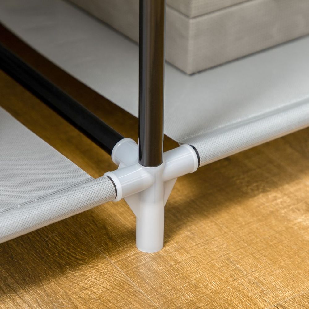 Constructed with a durable metal frame, this wardrobe guarantees stability and strength even when fully packed with your essentials. The fabric cover includes a convenient roll-up door that can be secured in an open position for effortless access to your items or left down to keep your garments protected and dust-free.