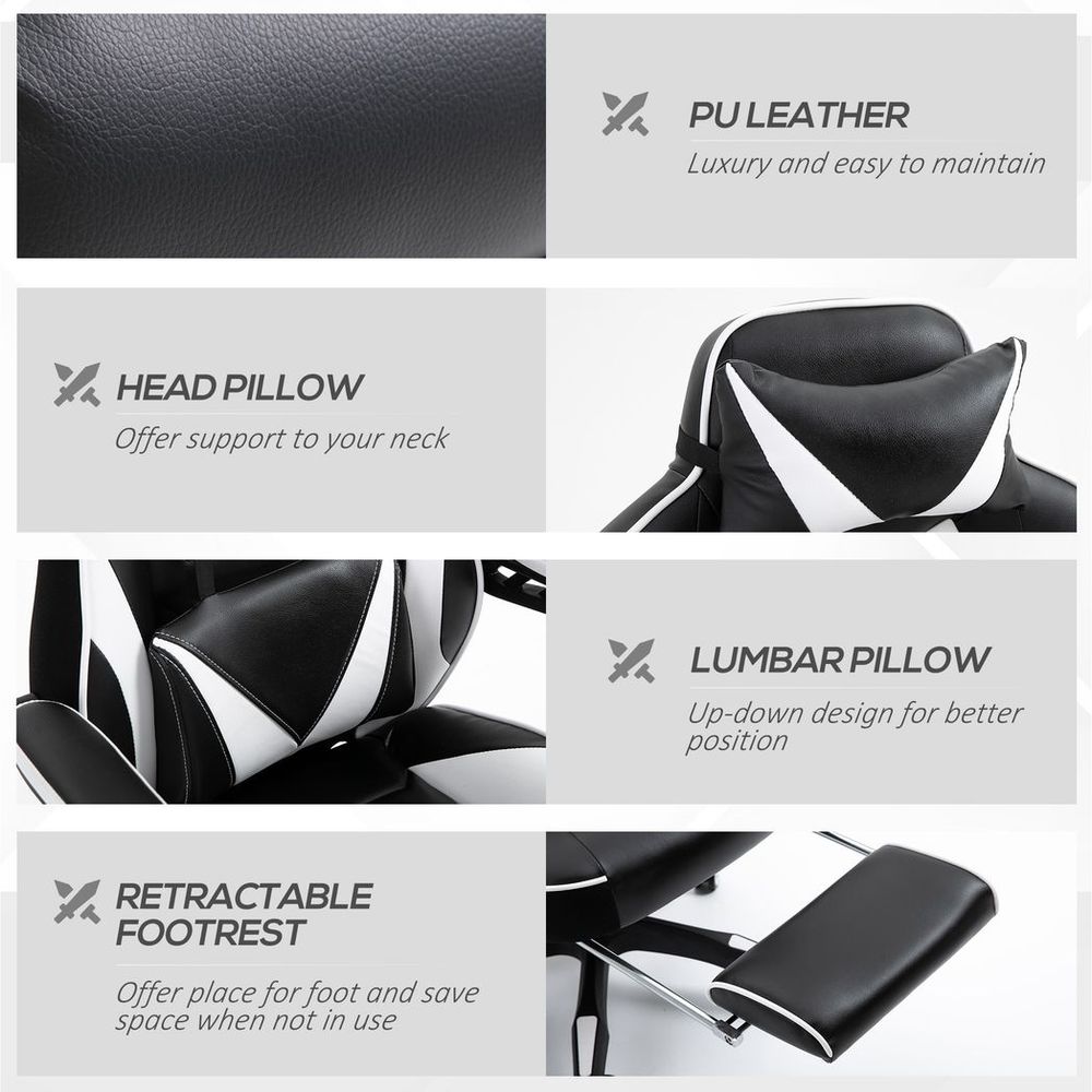 Ergonomic Reclining Gaming Chair with Footrest - Stylish White Office Comfort