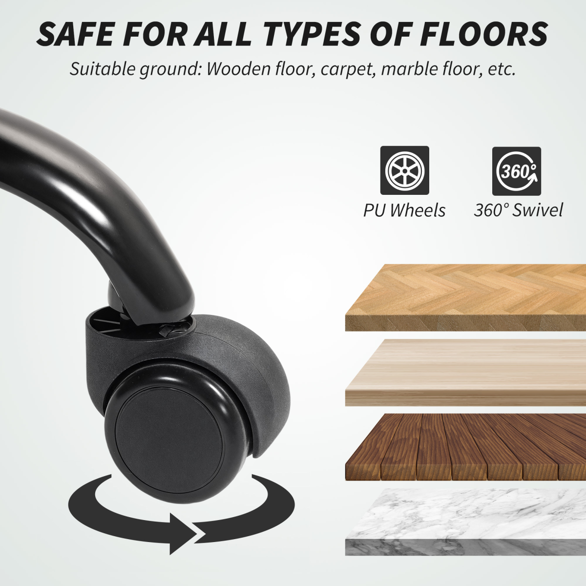 ● Five wheels to move chair around easily, quietly and floor-friendly both seated and empty