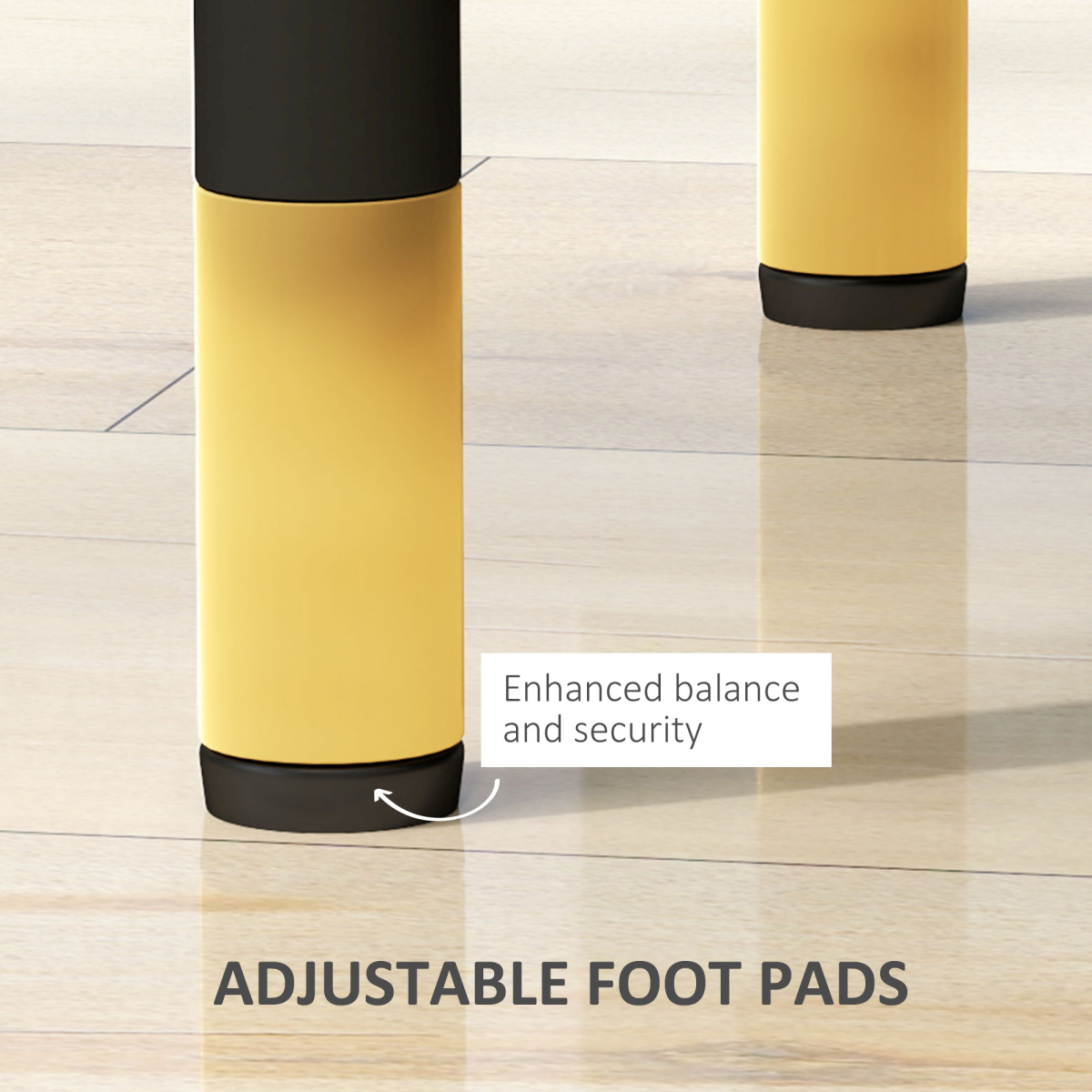 ● Adjustable foot pads provide balance on uneven floors