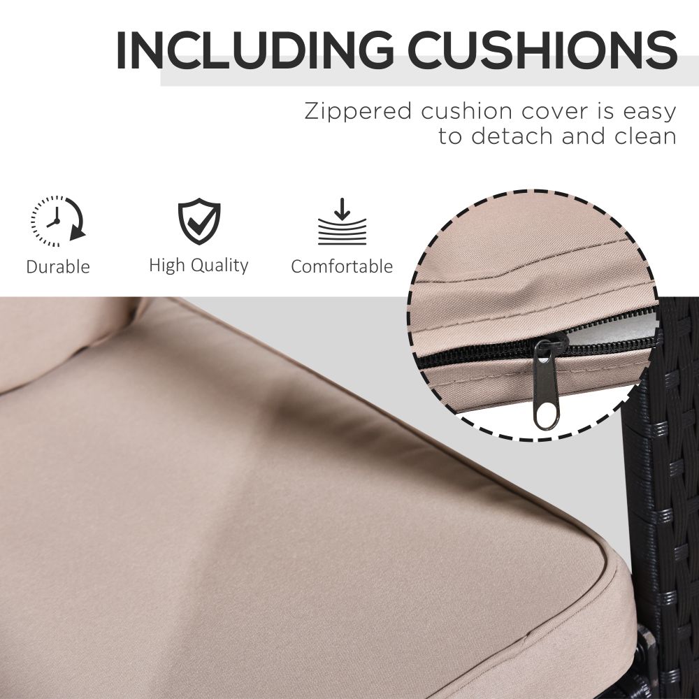 Outsunny 2 Seater Rattan Rocking Set W/Cushion - Black/Beige