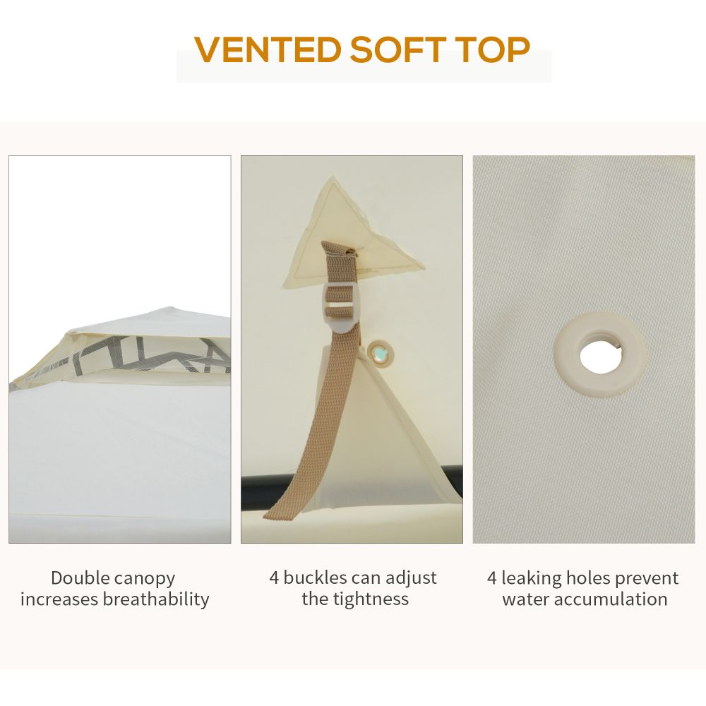 Outsunny 3x3m 2-Tier Polyester Draped Outdoor Garden Gazebo - Cream White