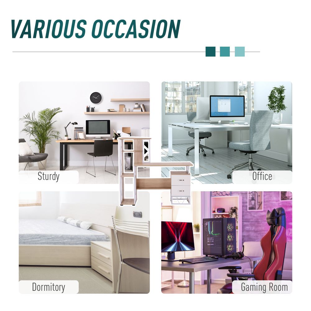 Workstation Computer Writing Desk with 2 Drawers and Multi-Shelves - Oak/White